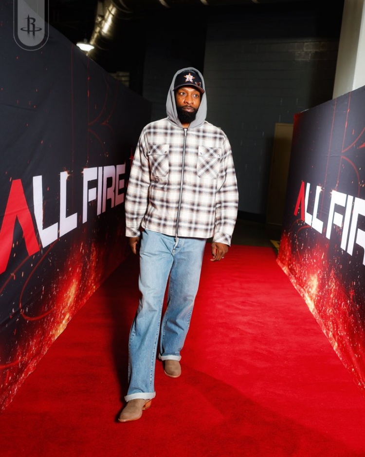 火箭众将红毯秀:格子衫成最爱 申京毛衣贵妇风 海王牛仔硬汉