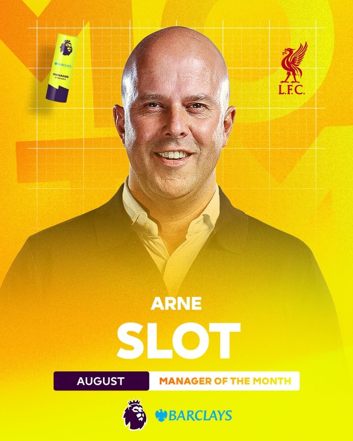 8月份三场比赛,斯洛特带领利物浦4-2伯恩茅斯、3-2纽卡、1-0阿森纳,取得三战全胜,领跑英超积分榜。