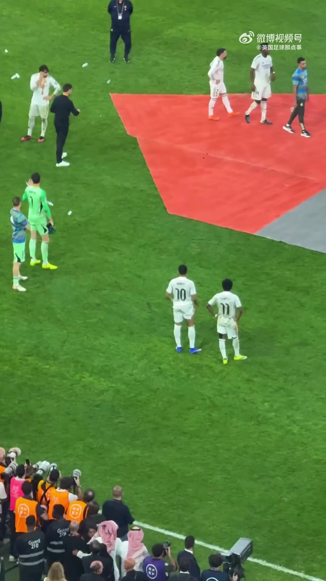 就在巴塞罗那球员即将走上球场领取奖杯之际,阿隆索示意皇马球员过去组成仪仗队,就像弗里克带领的球队刚刚为他们所做的那样。